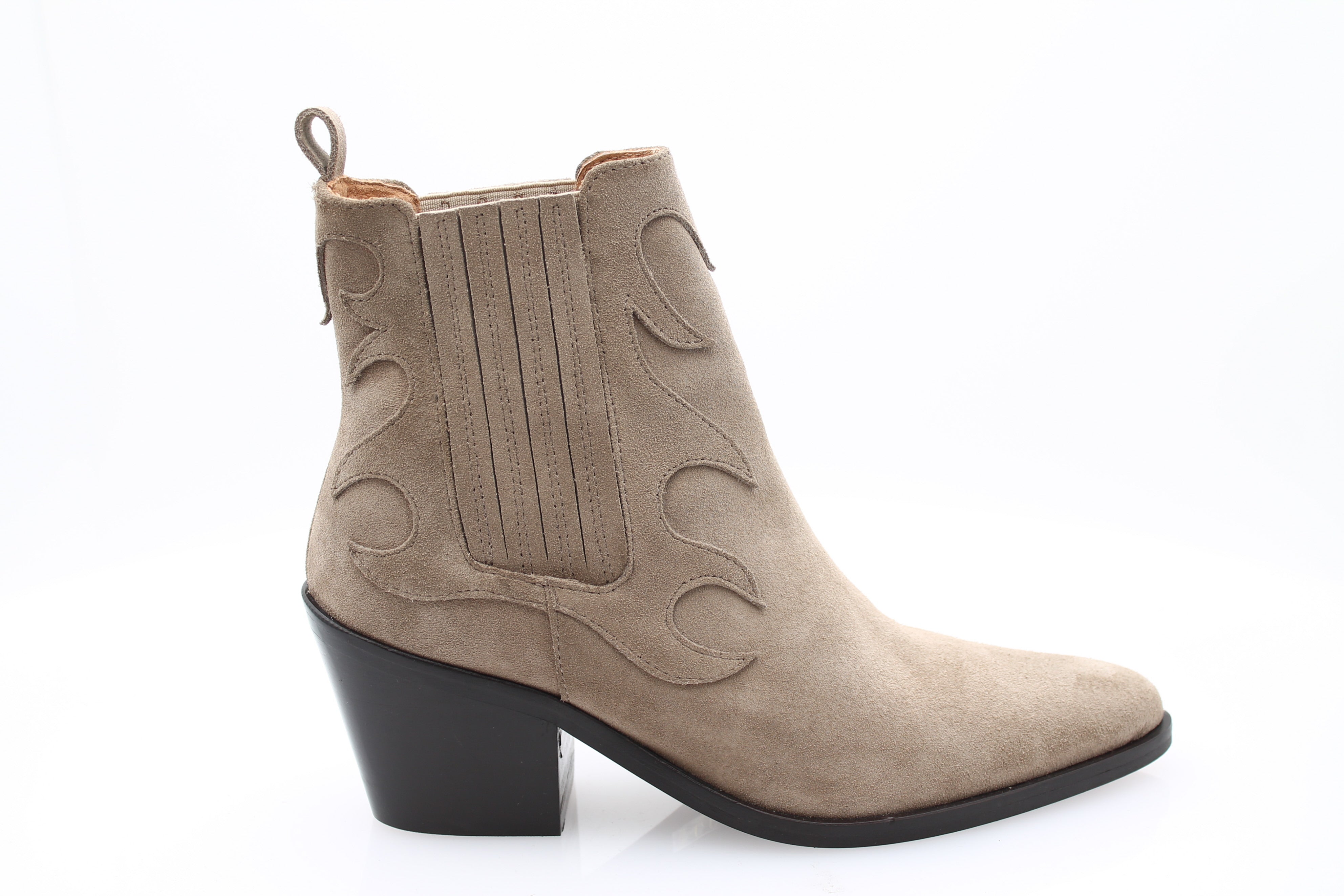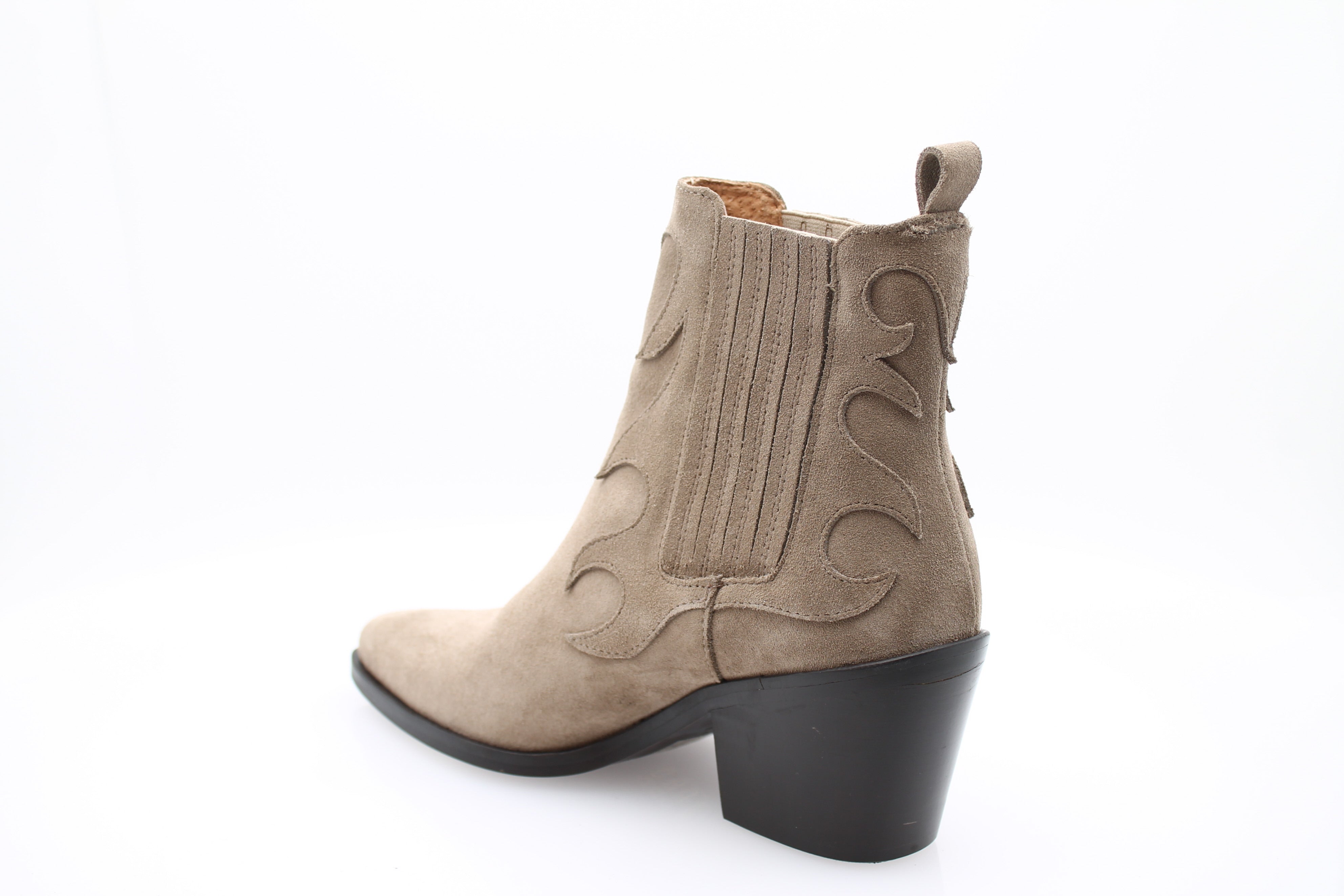 Voeg een vleugje elegantie toe aan uw garderobe met de EXIT AND CO suède enkellaarsjes.