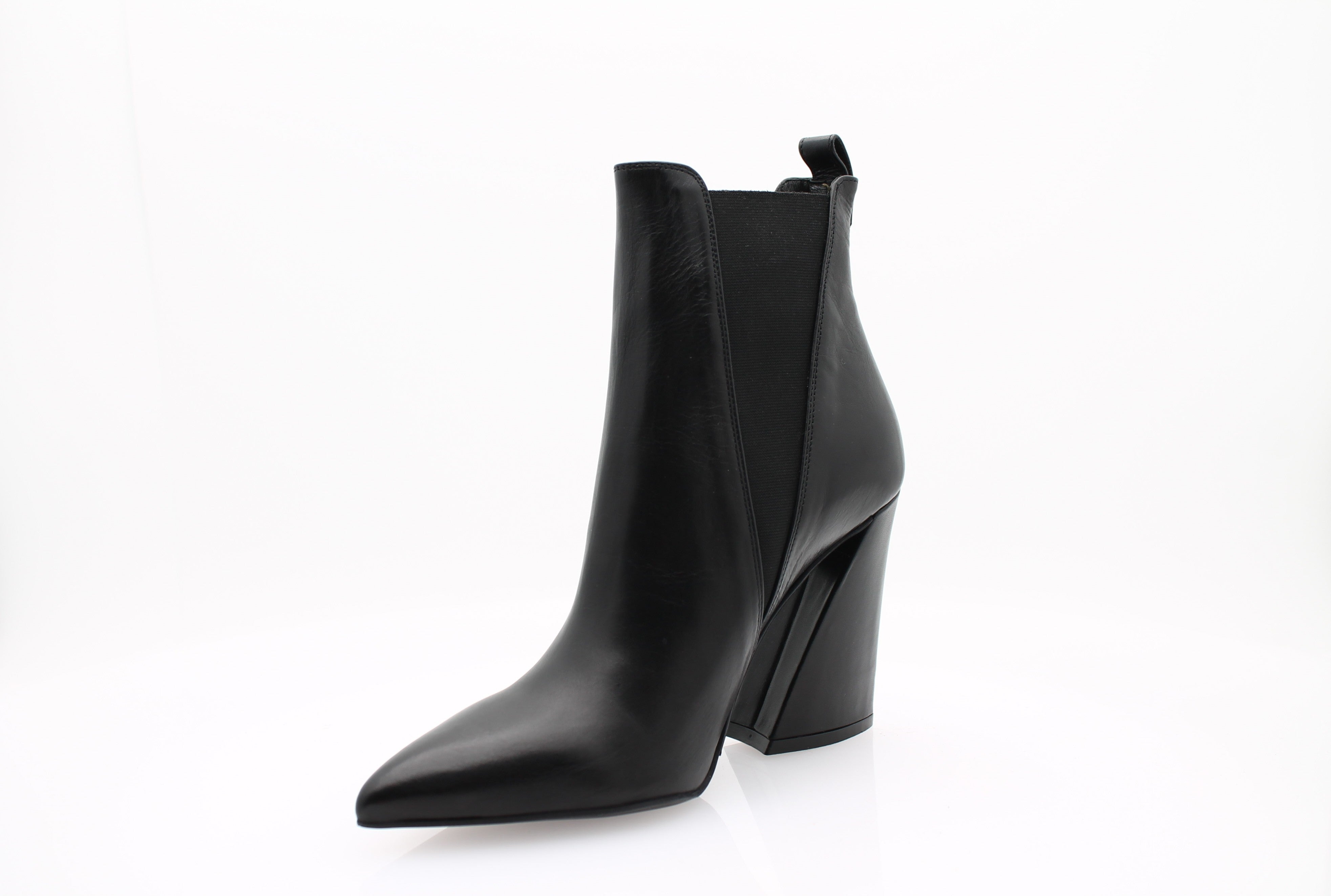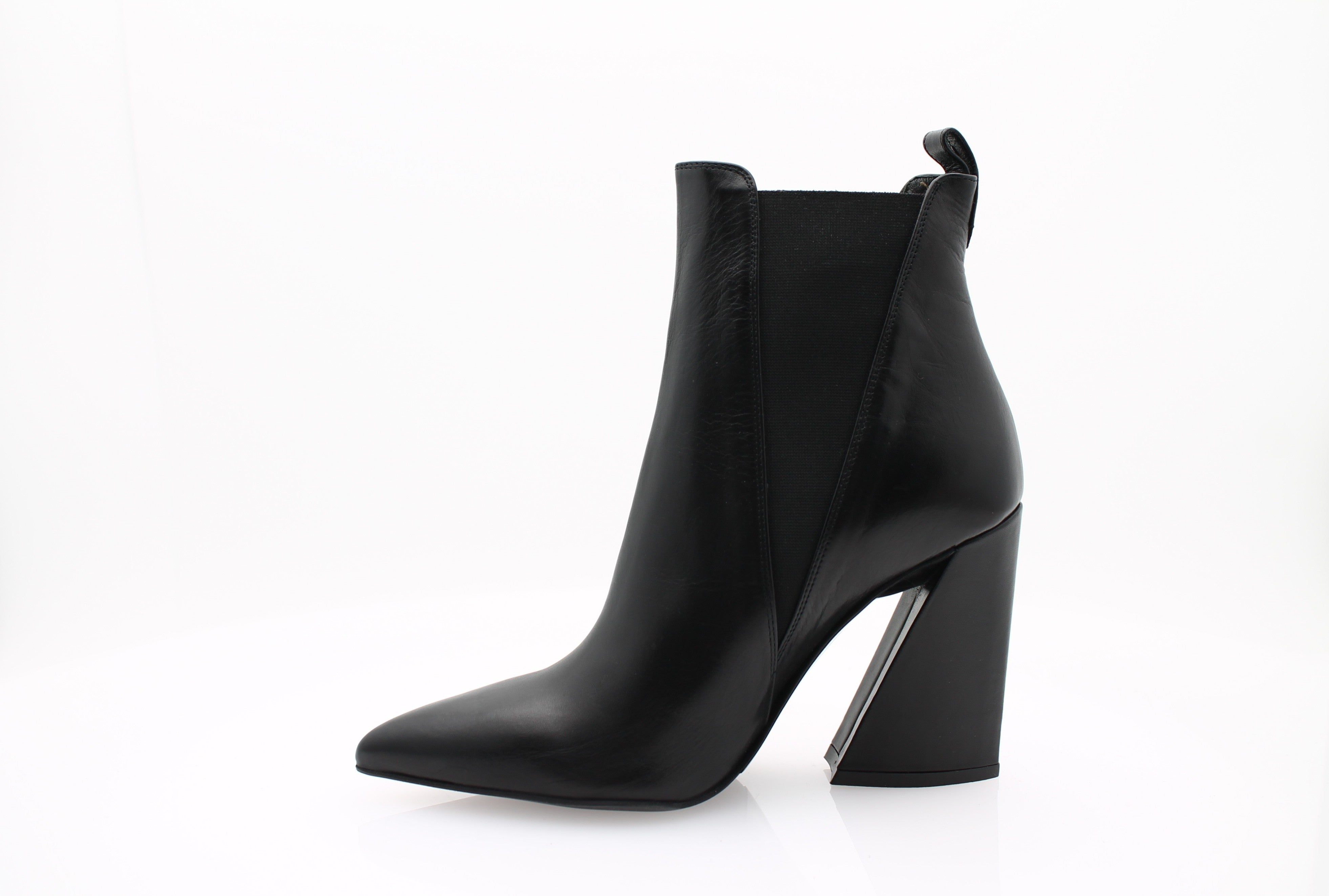 Ces bottines Albano se distinguent par leur cuir verni au fini lustré, associé à un bout pointu qui apporte une allure résolument contemporaine. Leur talon géométrique de 10 cm ajoute une touche d’originalité, tout en allongeant la silhouette de façon élégante.