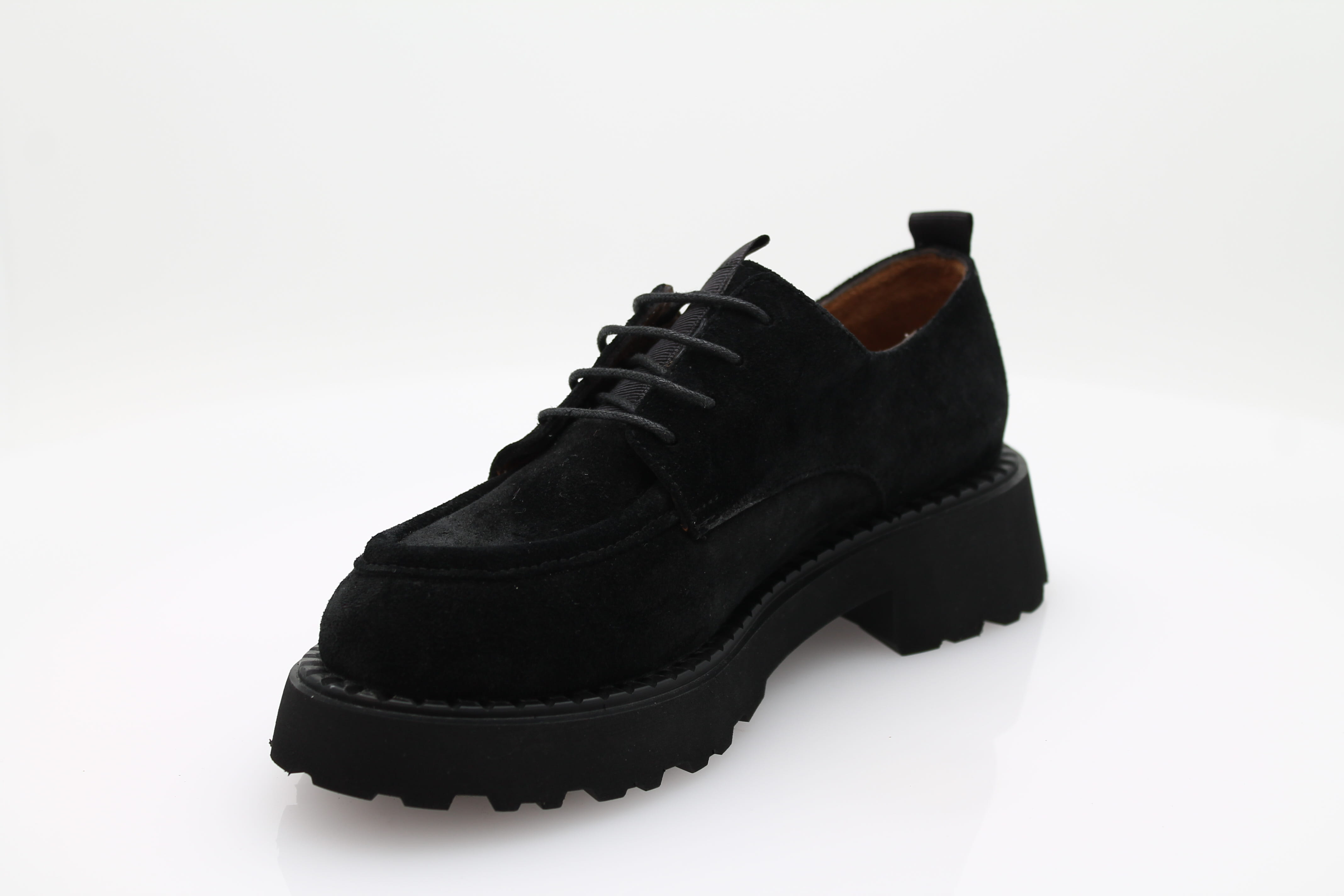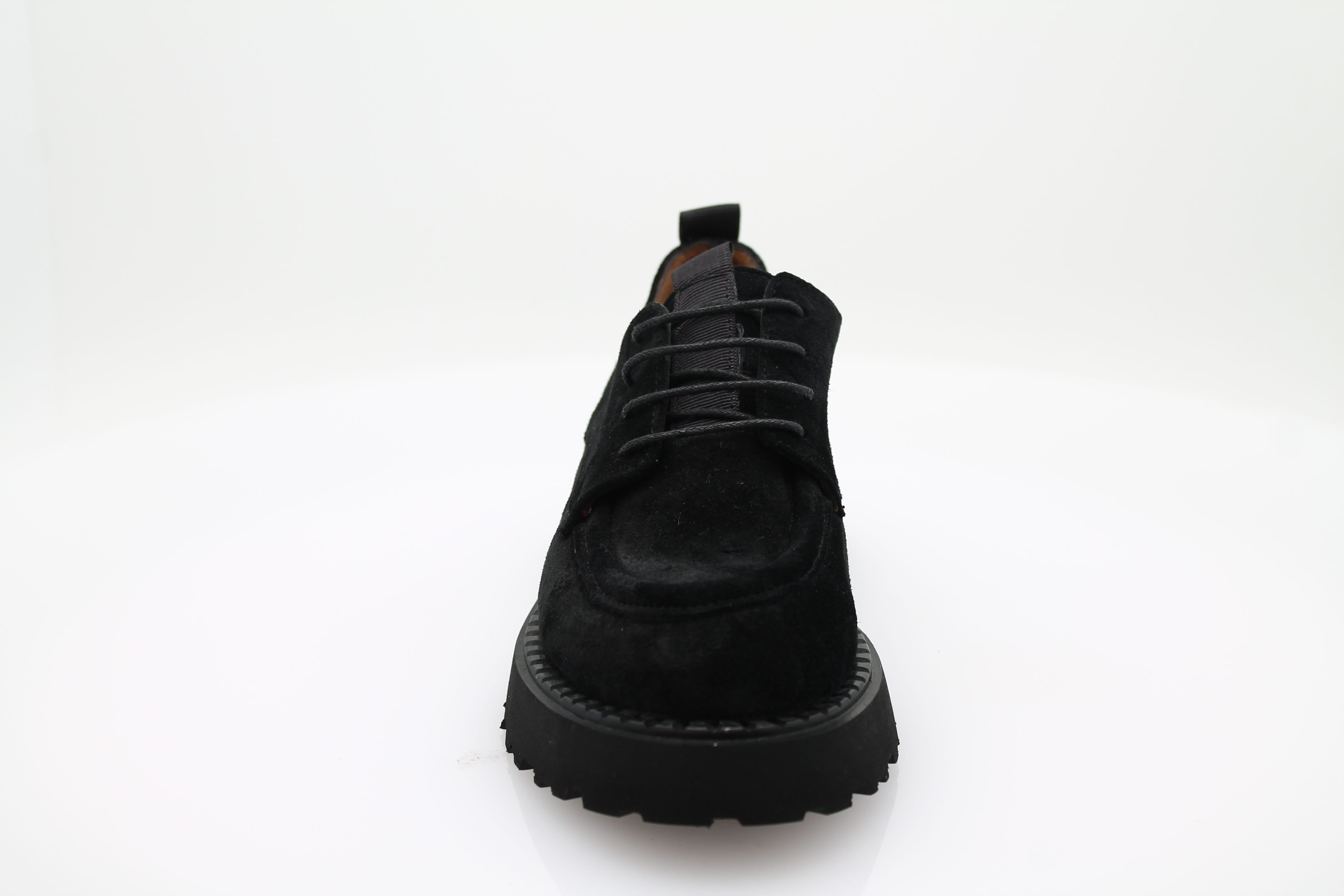 Ces derbies épaisses en daim noir incarnent un style chic et robuste.