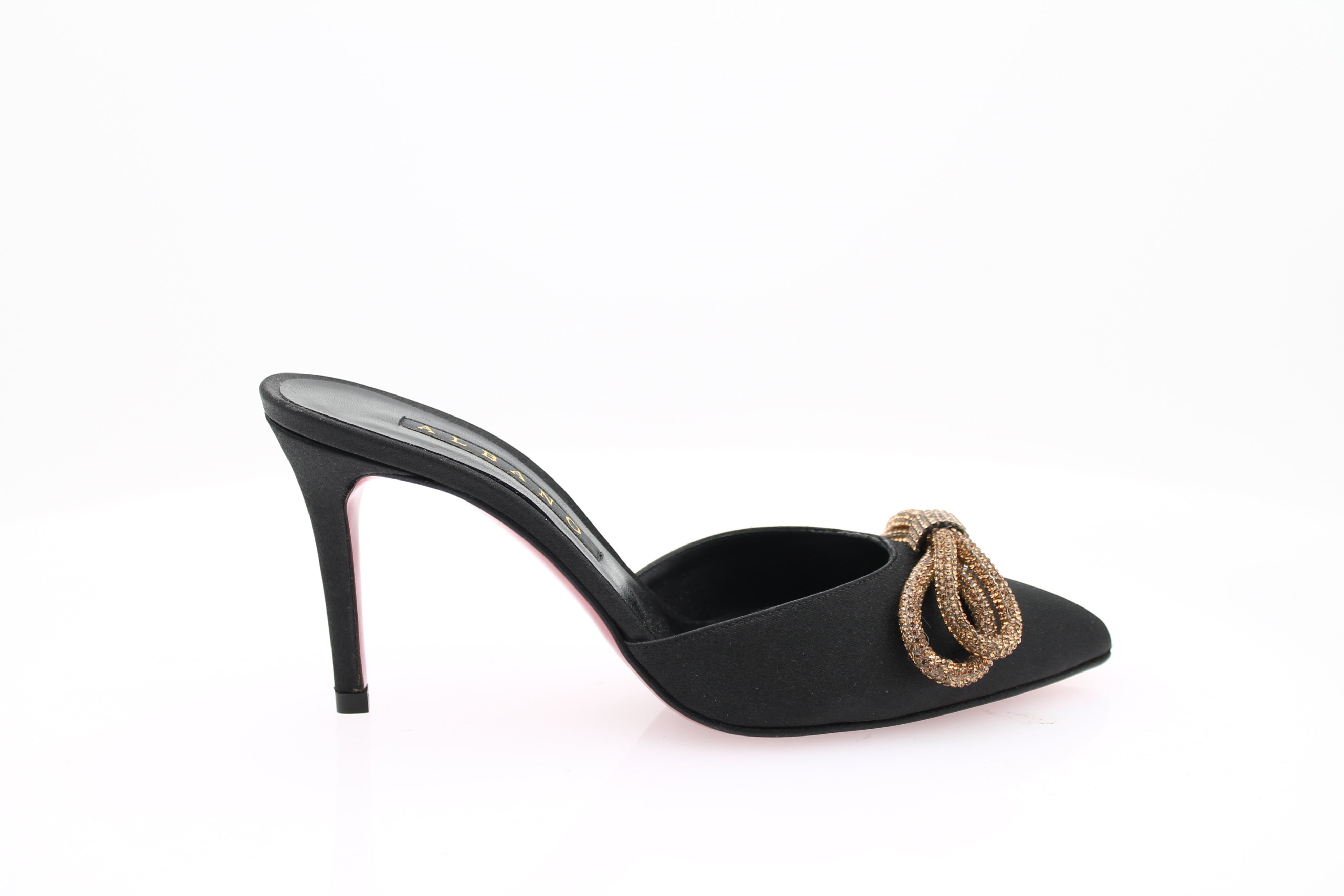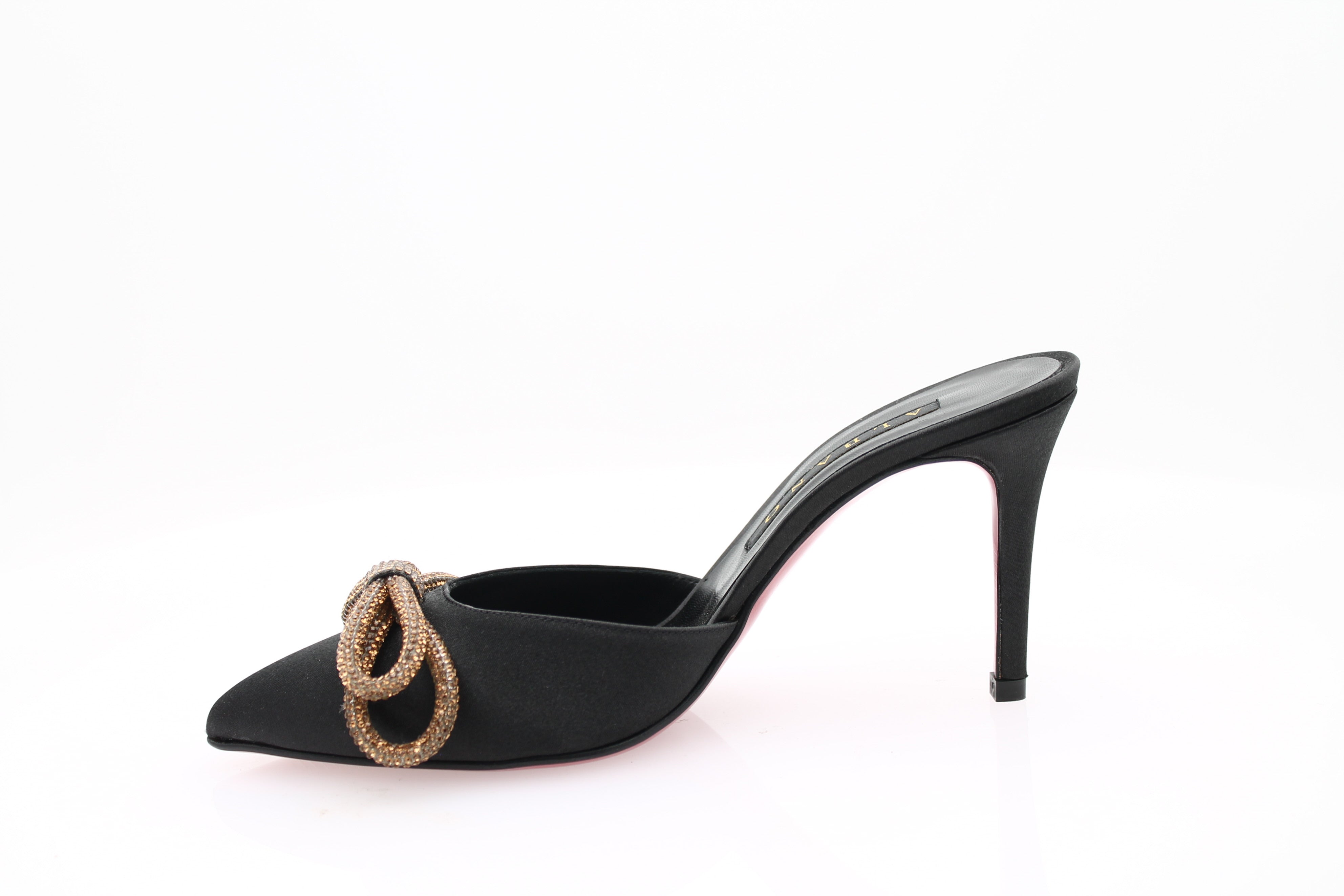Les mules Albano en satin noir incarnent l'élégance et le raffinement. Leur bout pointu sophistiqué et leur détail en strass sous forme de nœud ajoutent une touche de glamour à chaque tenue. Conçues pour celles qui recherchent un équilibre parfait entre style et confort, ces mules offrent une silhouette élancée grâce à leur talon de 10 cm, tout en restant agréables à porter.