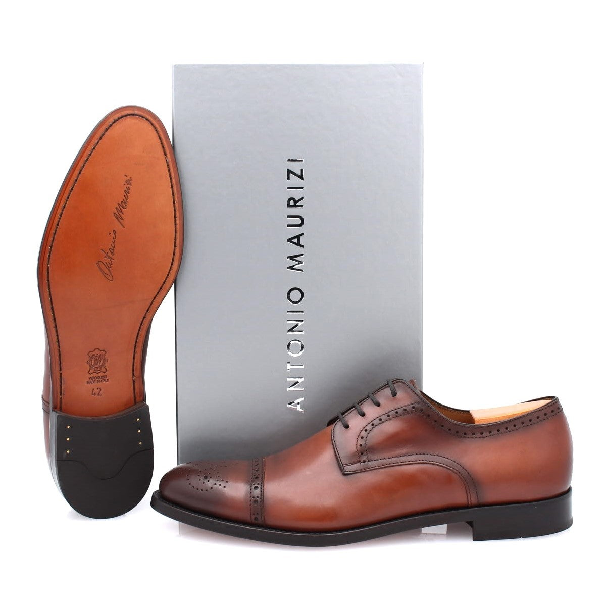 ANTONIO MAURIZI - Richelieu Homme en cuir ornée de perforations - Cognac