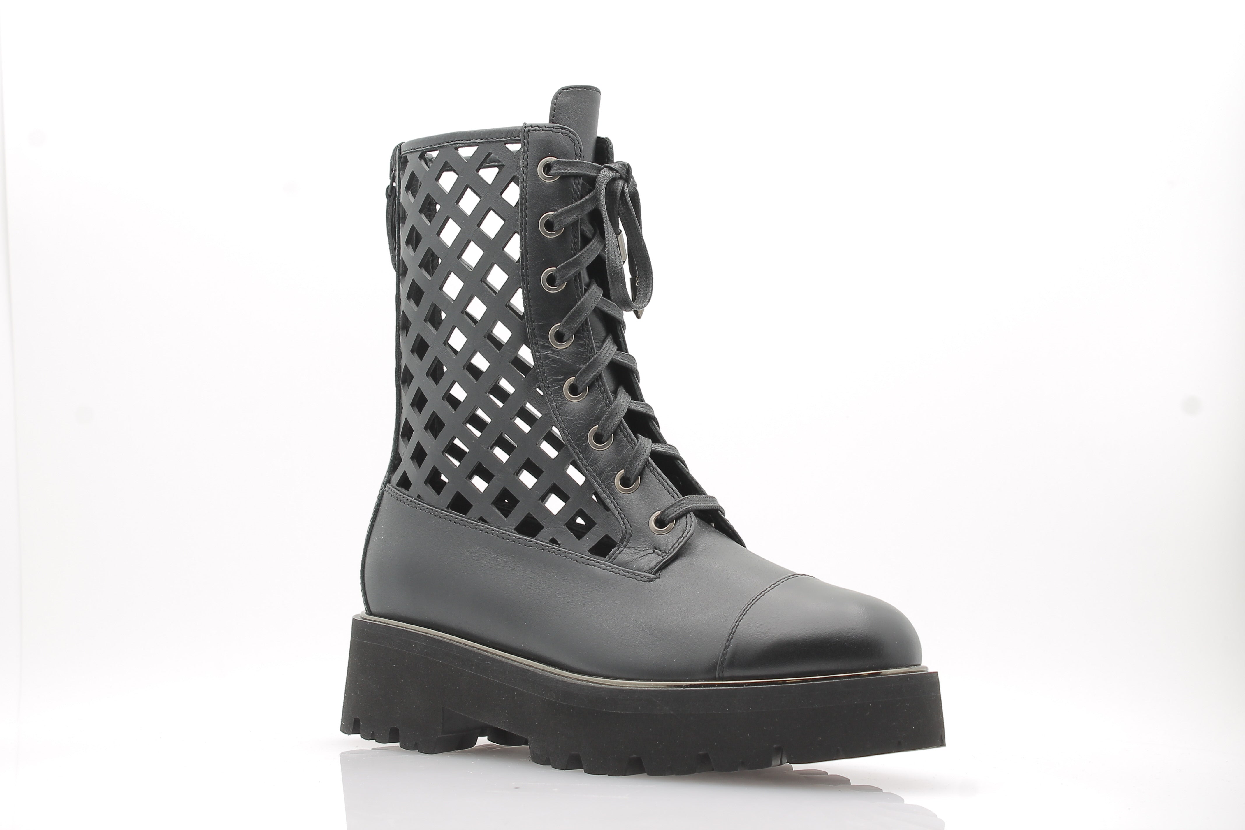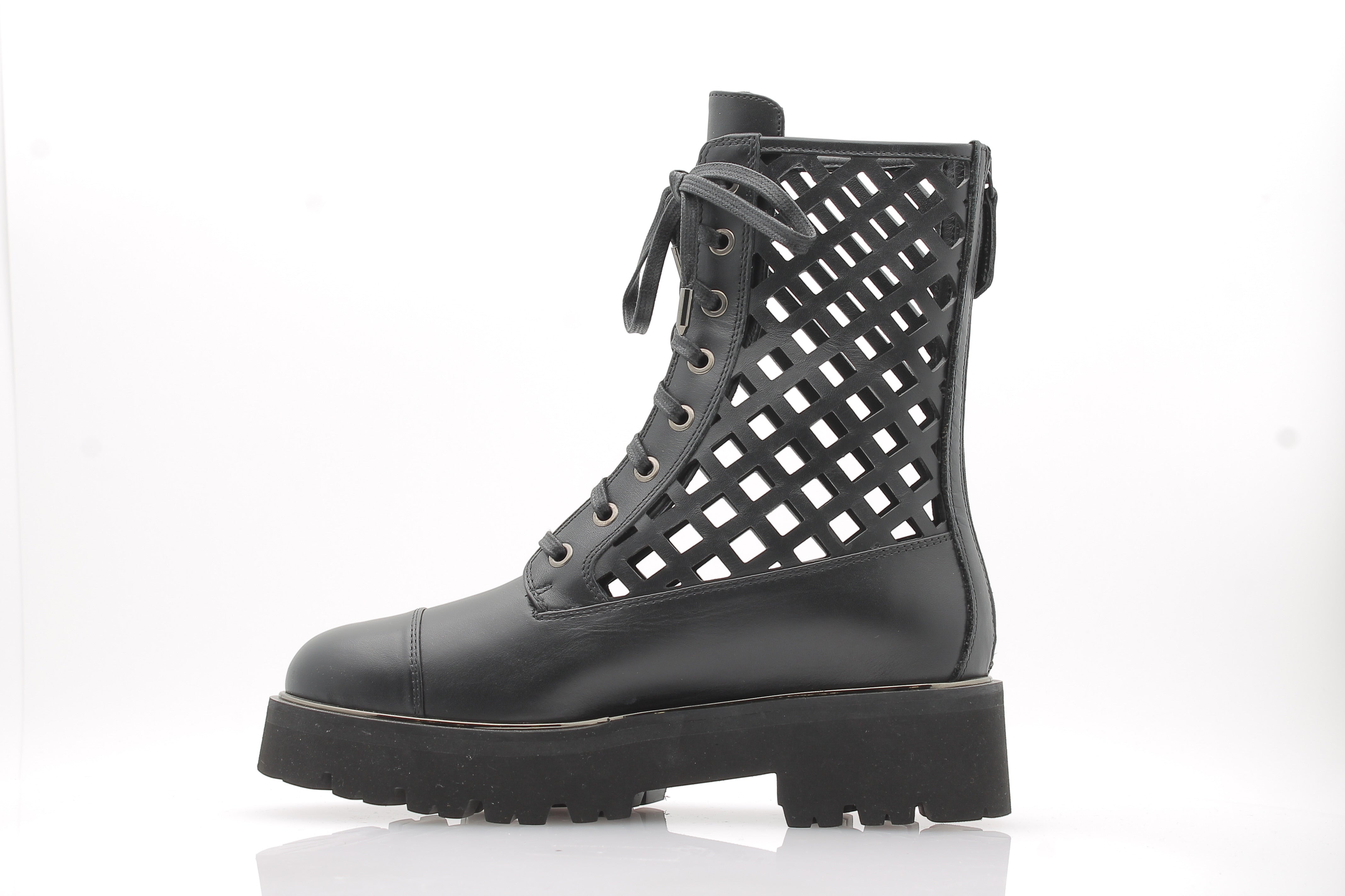 Bottine en cuir de veau brillant | Découpes design | Détails métalliques lumineux | Fermeture zip arrière | Semelle crantée en caoutchouc | Insole en cuir rembourrée | Logo signature Aquazzura
