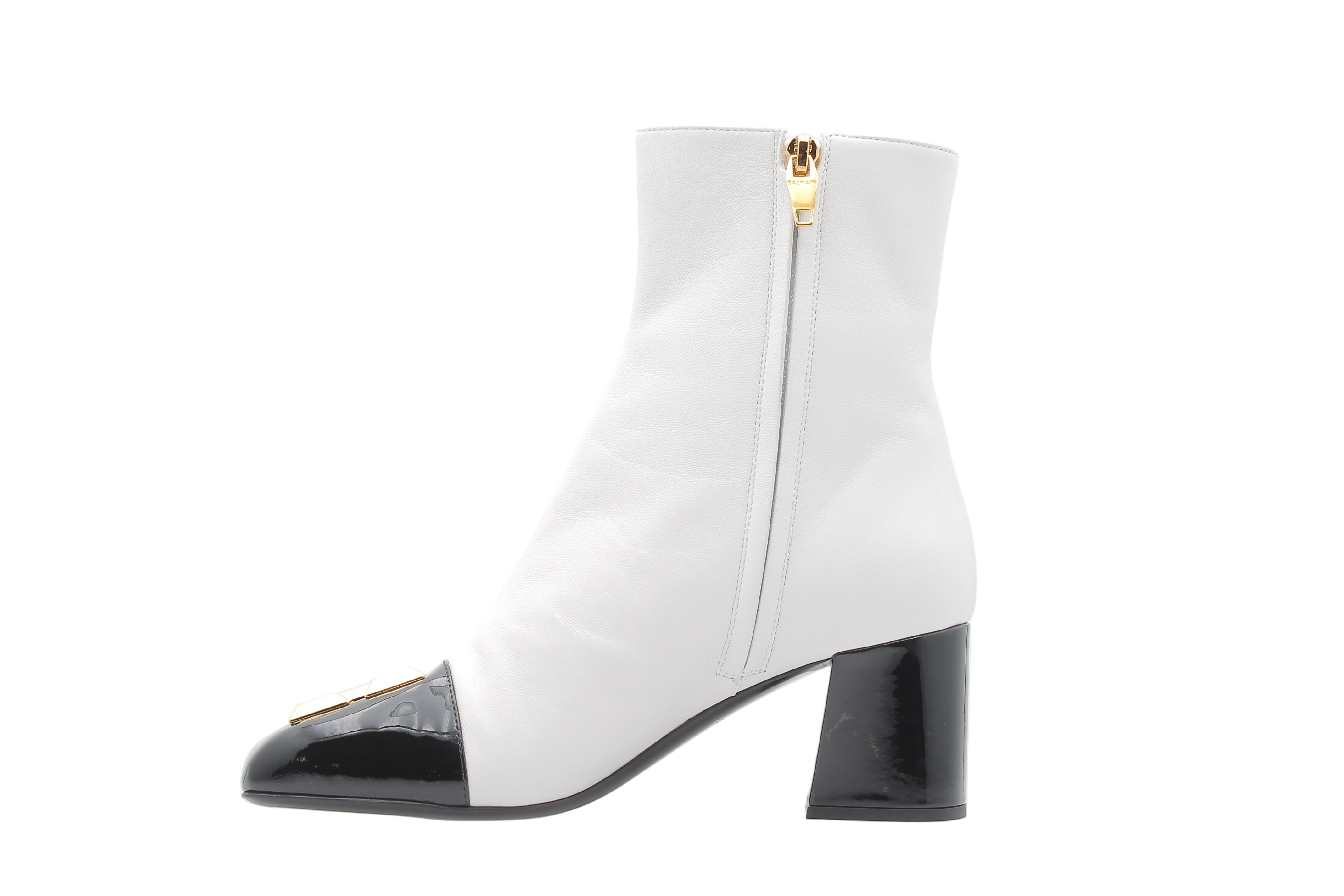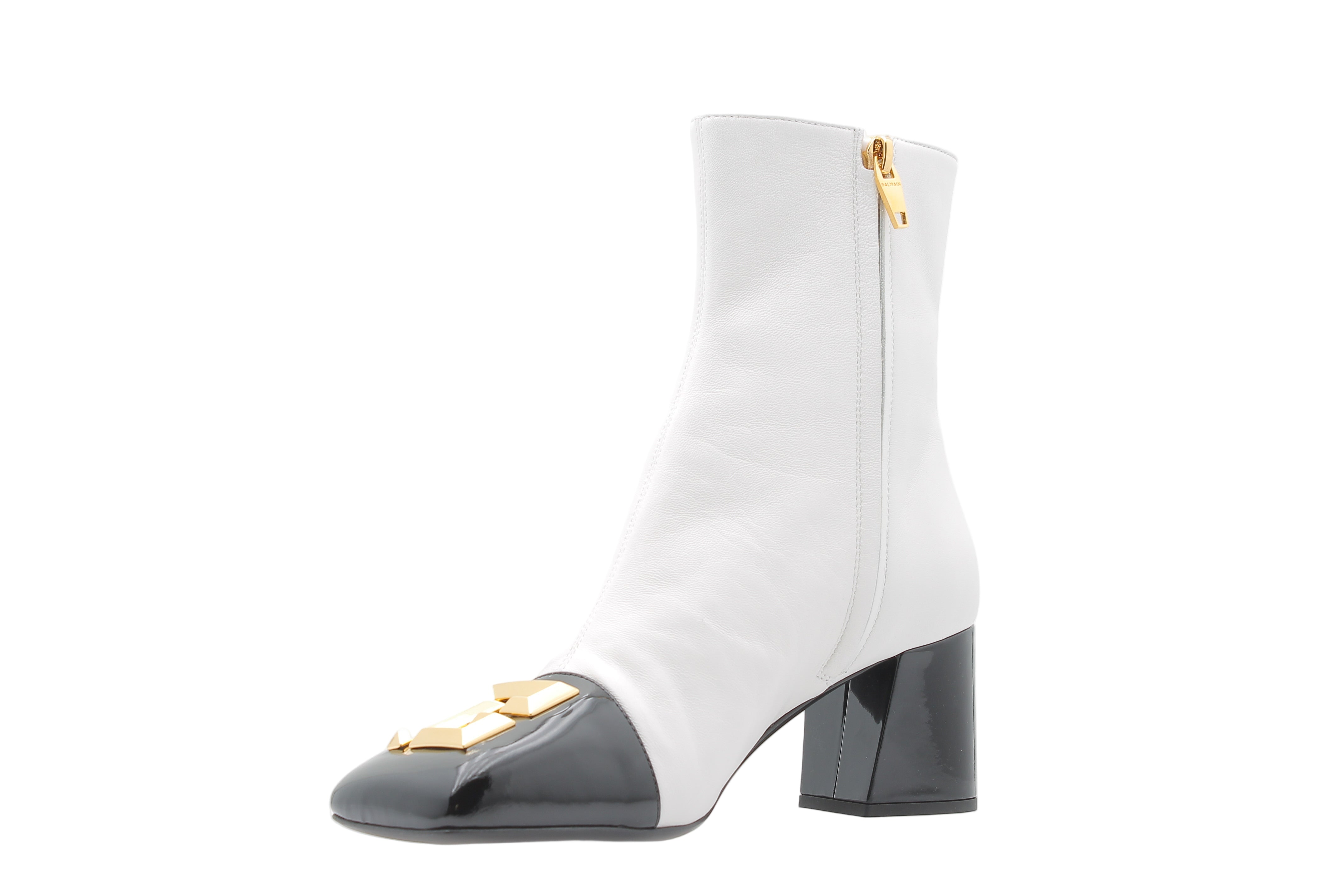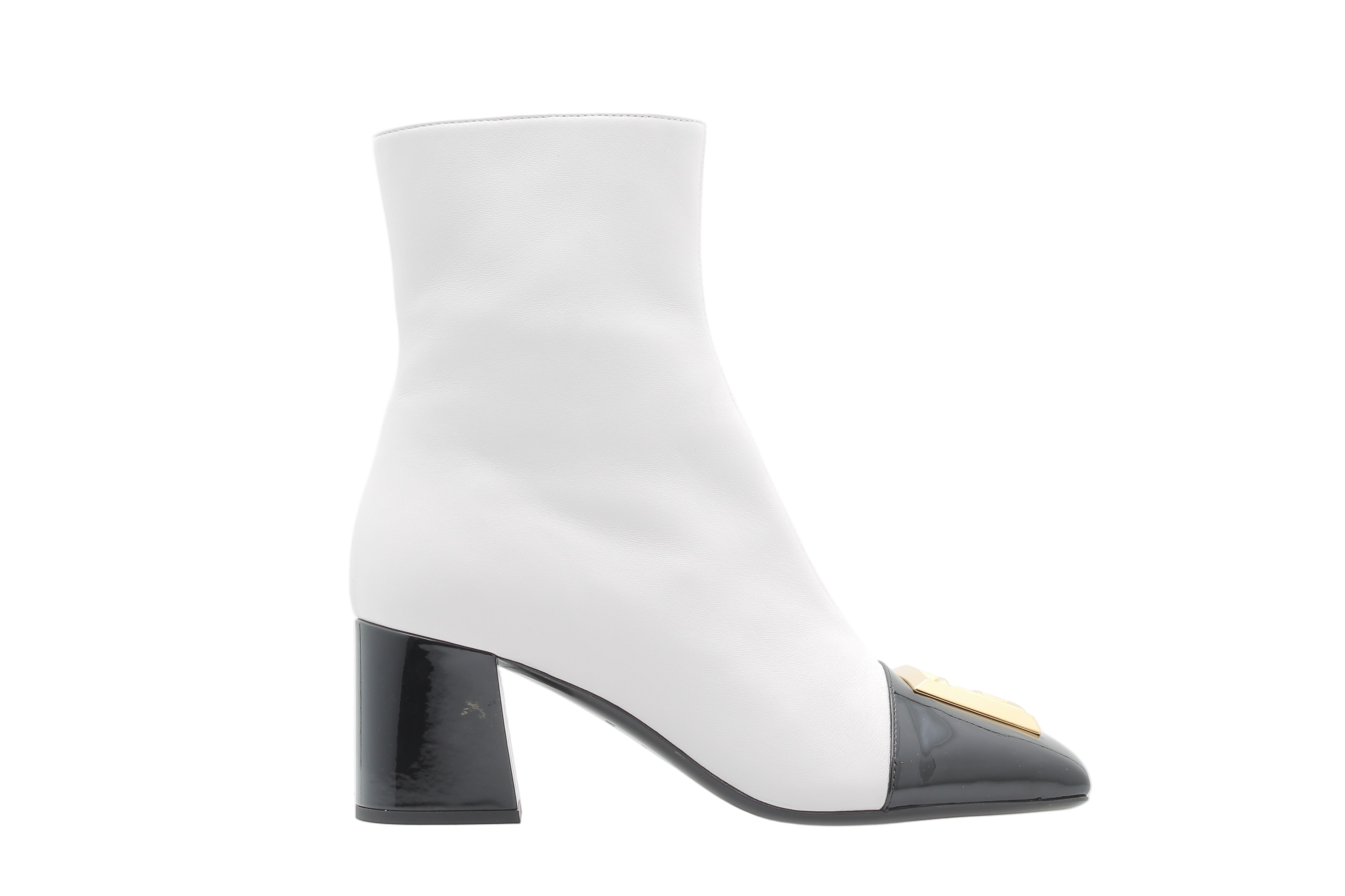 Avec la Edna Ankle Boots, BALMAIN signe une pièce forte de la garde-robe contemporaine. Cette bottine blanche à bout carré est confectionnée en cuir lisse de qualité supérieure, pour une finition à la fois épurée et luxueuse. Le logo BALMAIN doré placé discrètement à l’avant vient souligner l’élégance de la chaussure, tout en affirmant son identité haut de gamme.