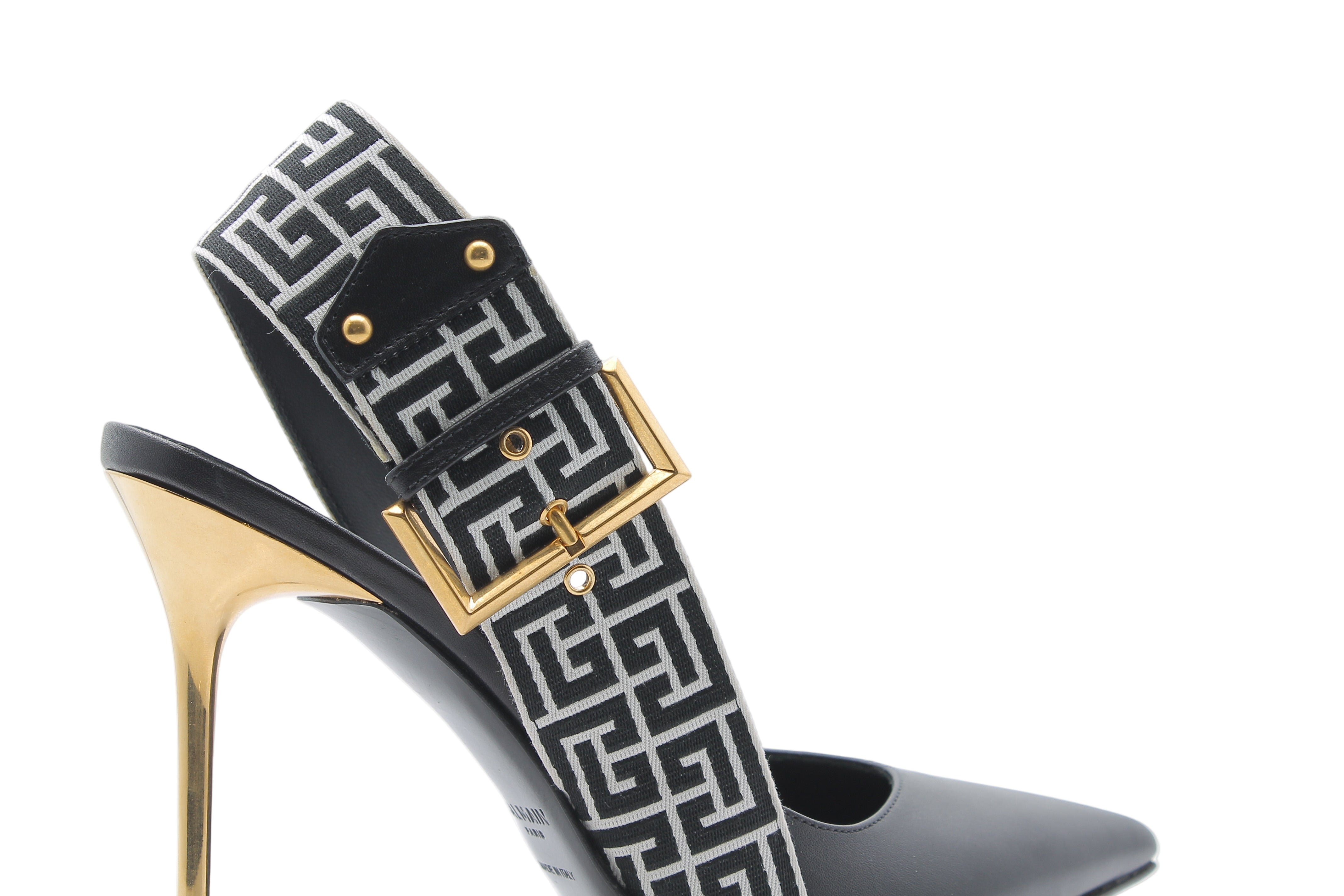 La combinaison du noir et du blanc, associée au motif graphique BALMAIN, confère une forte personnalité à cette chaussure de luxe. Que vous optiez pour un tailleur sobre ou une robe plus audacieuse, le Ruby Sling rehausse chaque tenue avec autorité. C’est une pièce à la fois mode et intemporelle, un investissement mode justifié par une qualité irréprochable et une finition artisanale de haut niveau.