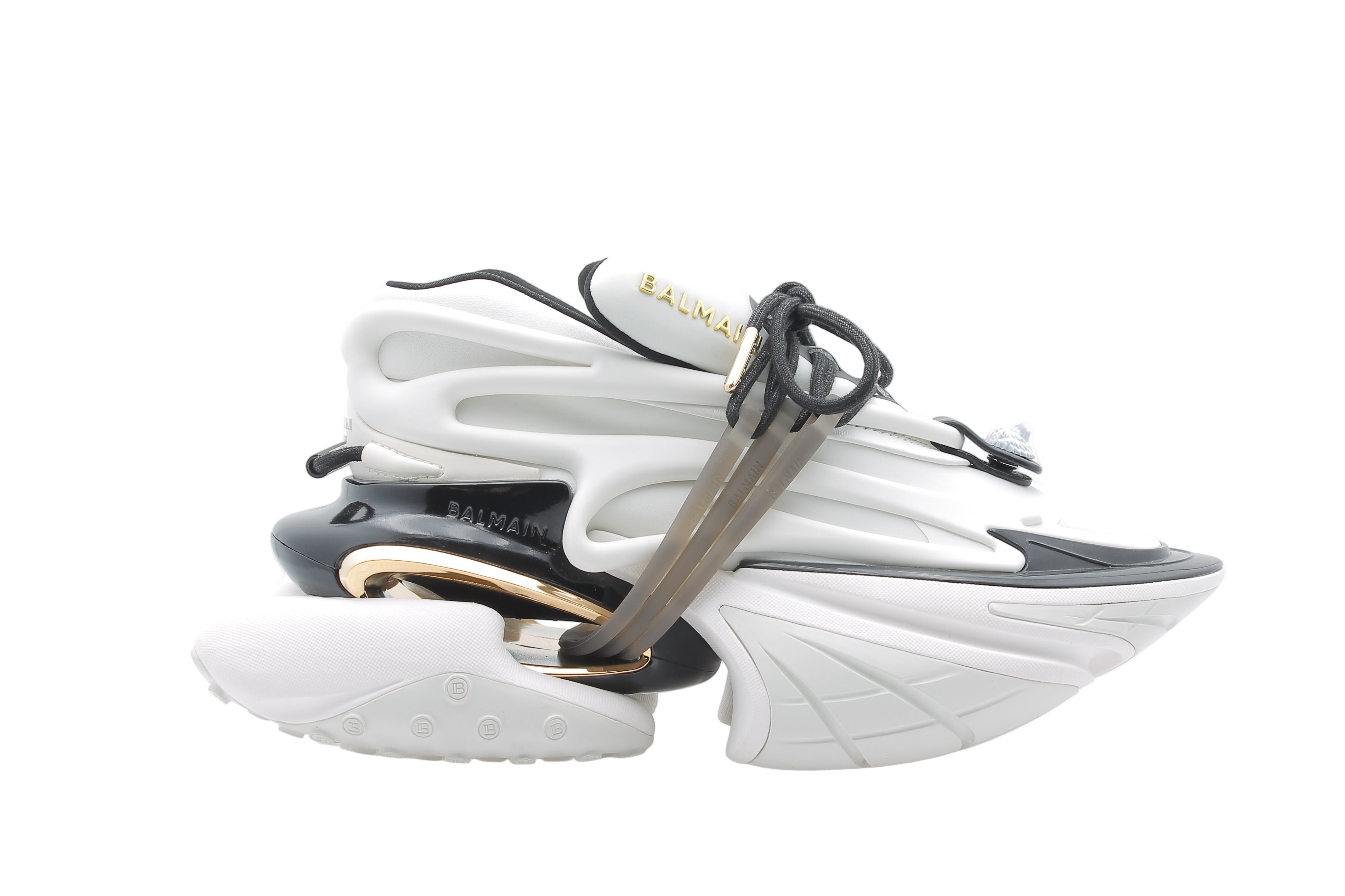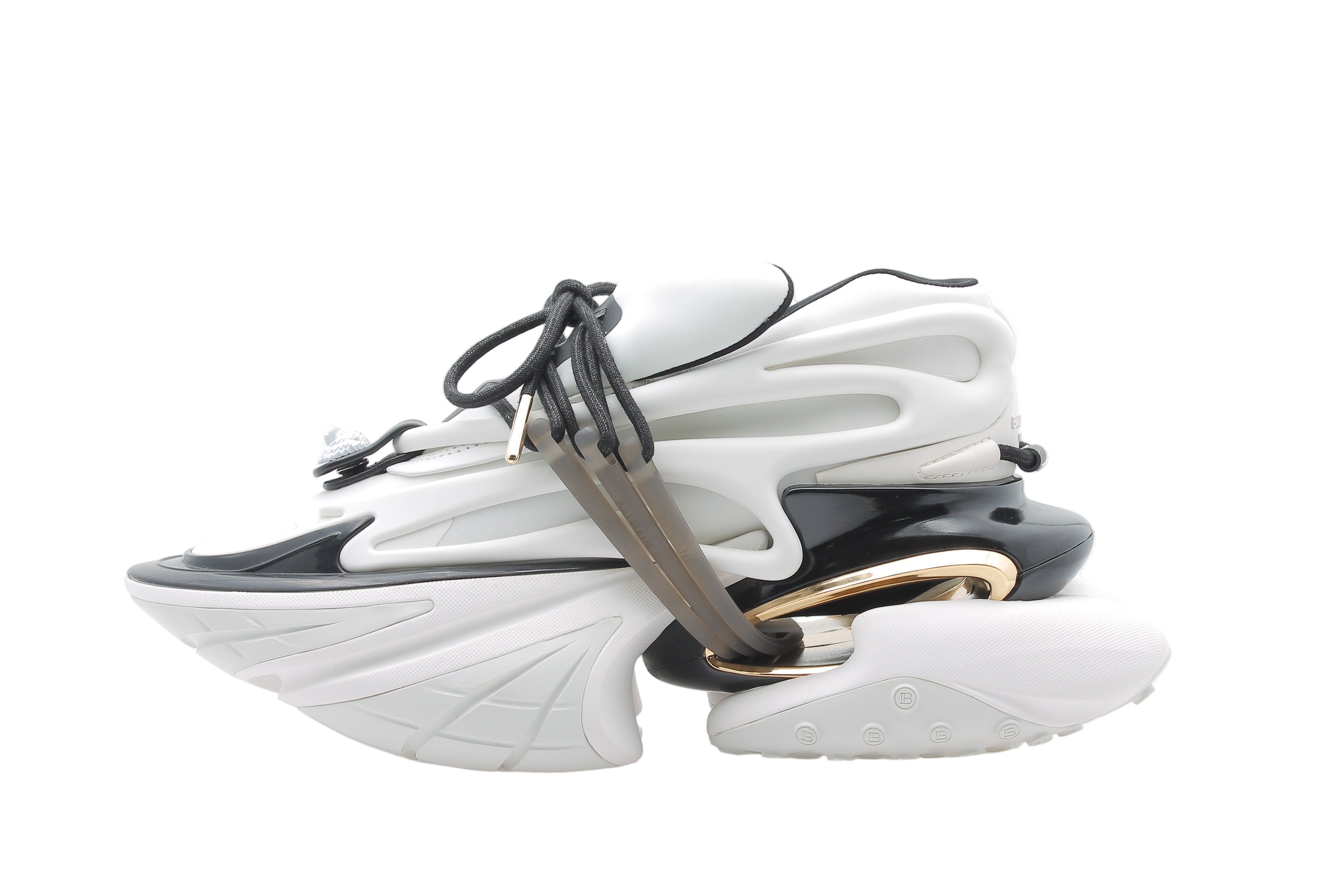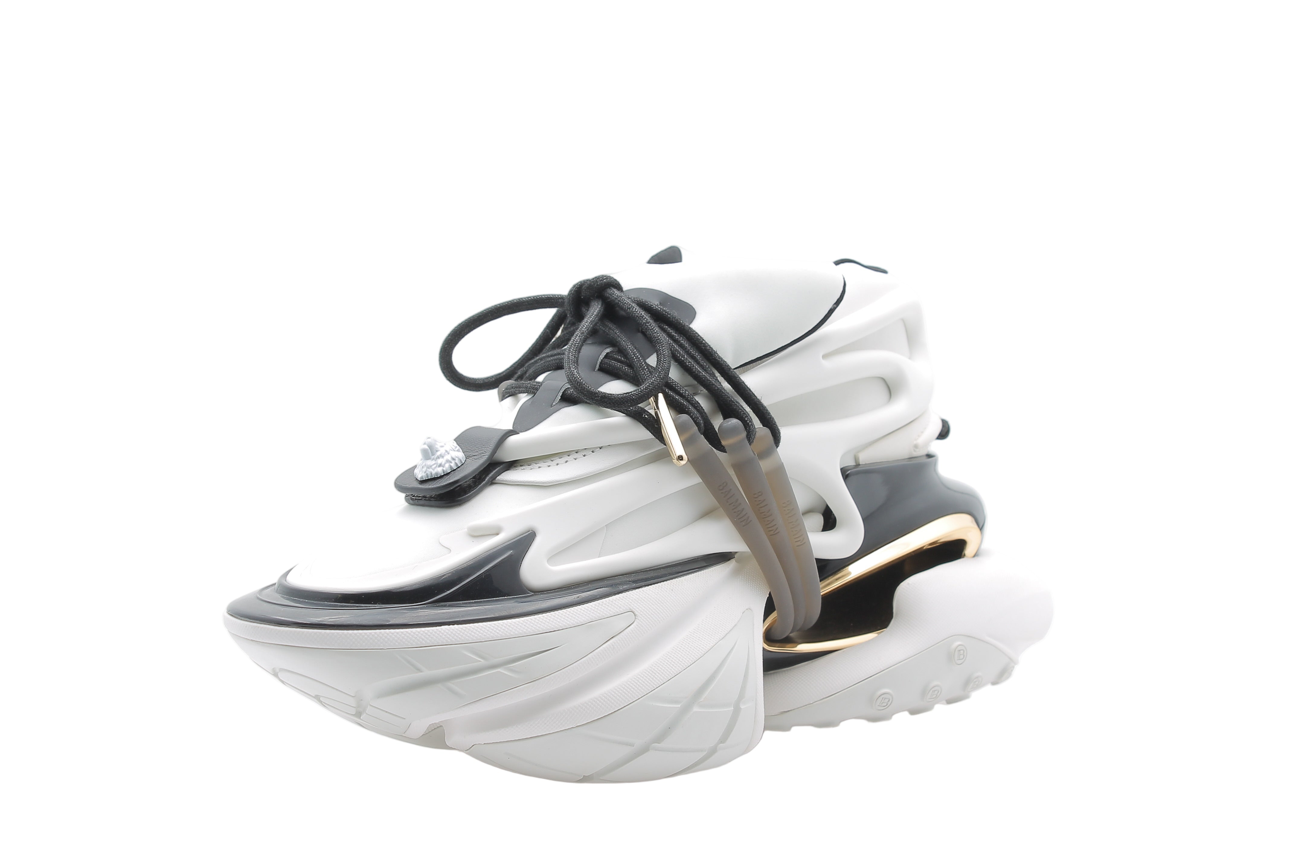 Avec la Unicorn Sneaker, Balmain redéfinit l’univers de la sneaker de luxe. Ce modèle blanc et noir au design ultra contemporain allie innovation stylistique, qualité haut de gamme et confort exceptionnel. Fabriquée à partir de néoprène souple et de cuir de veau lisse, cette sneaker impose un style hybride et audacieux qui ne laisse personne indifférent.
