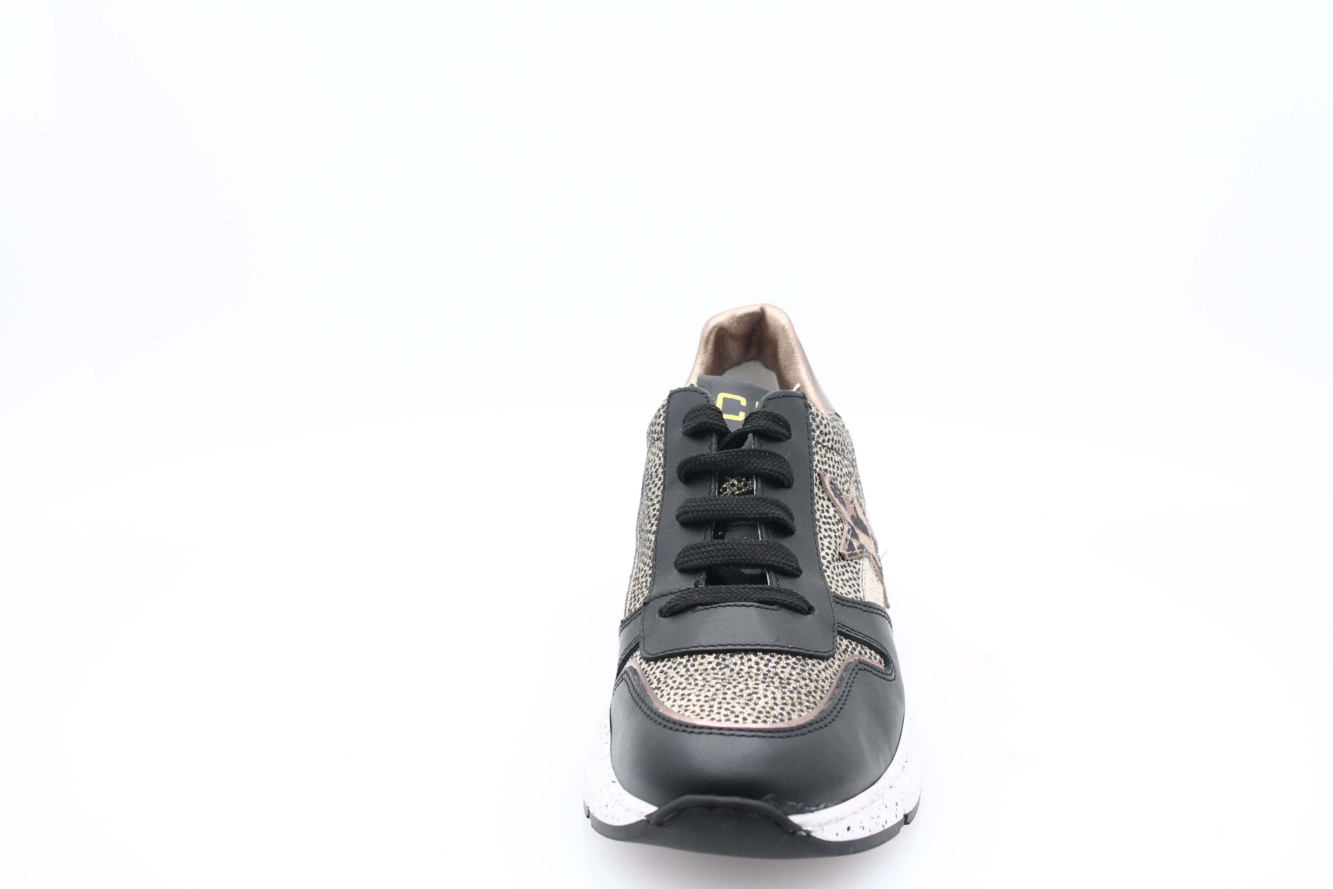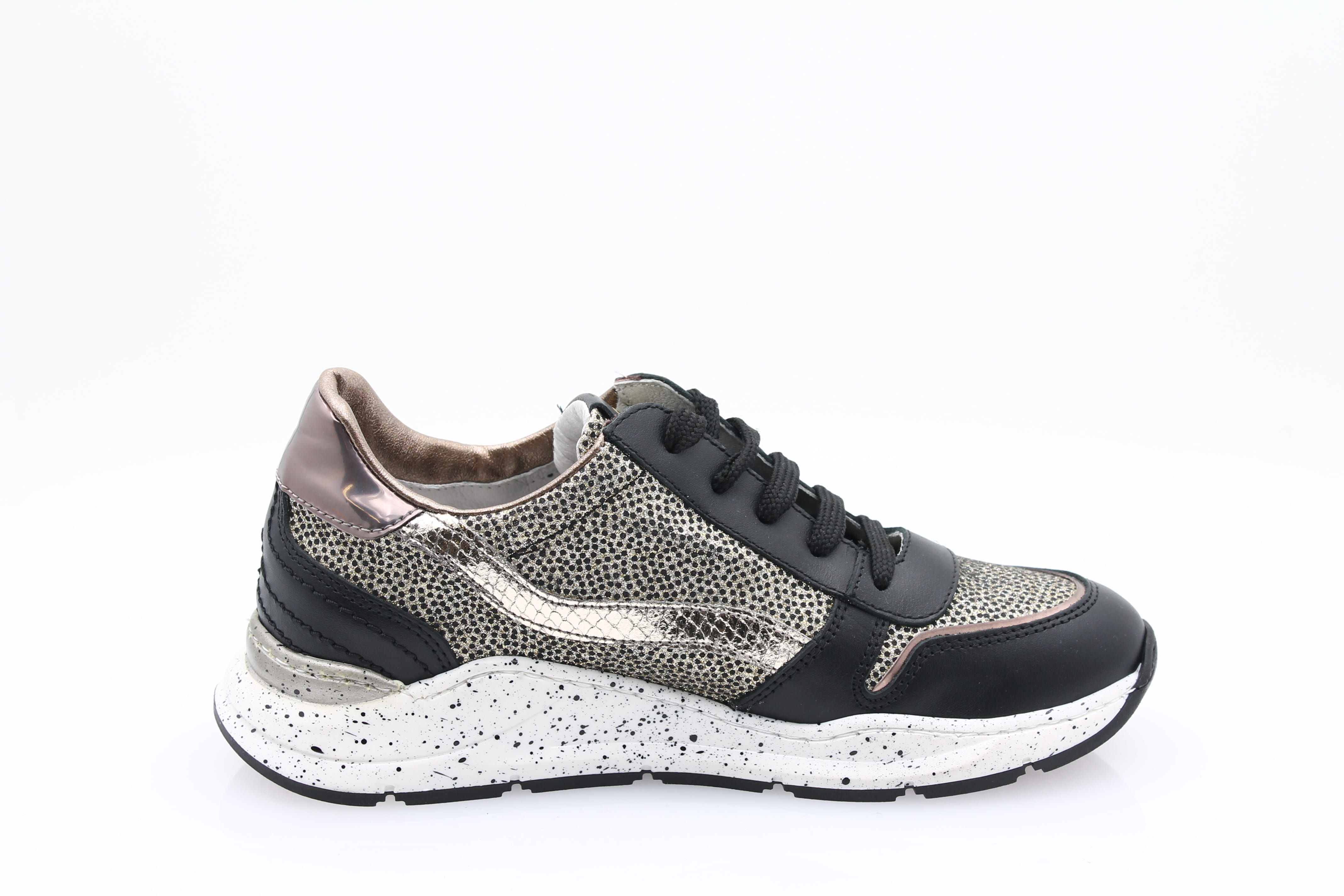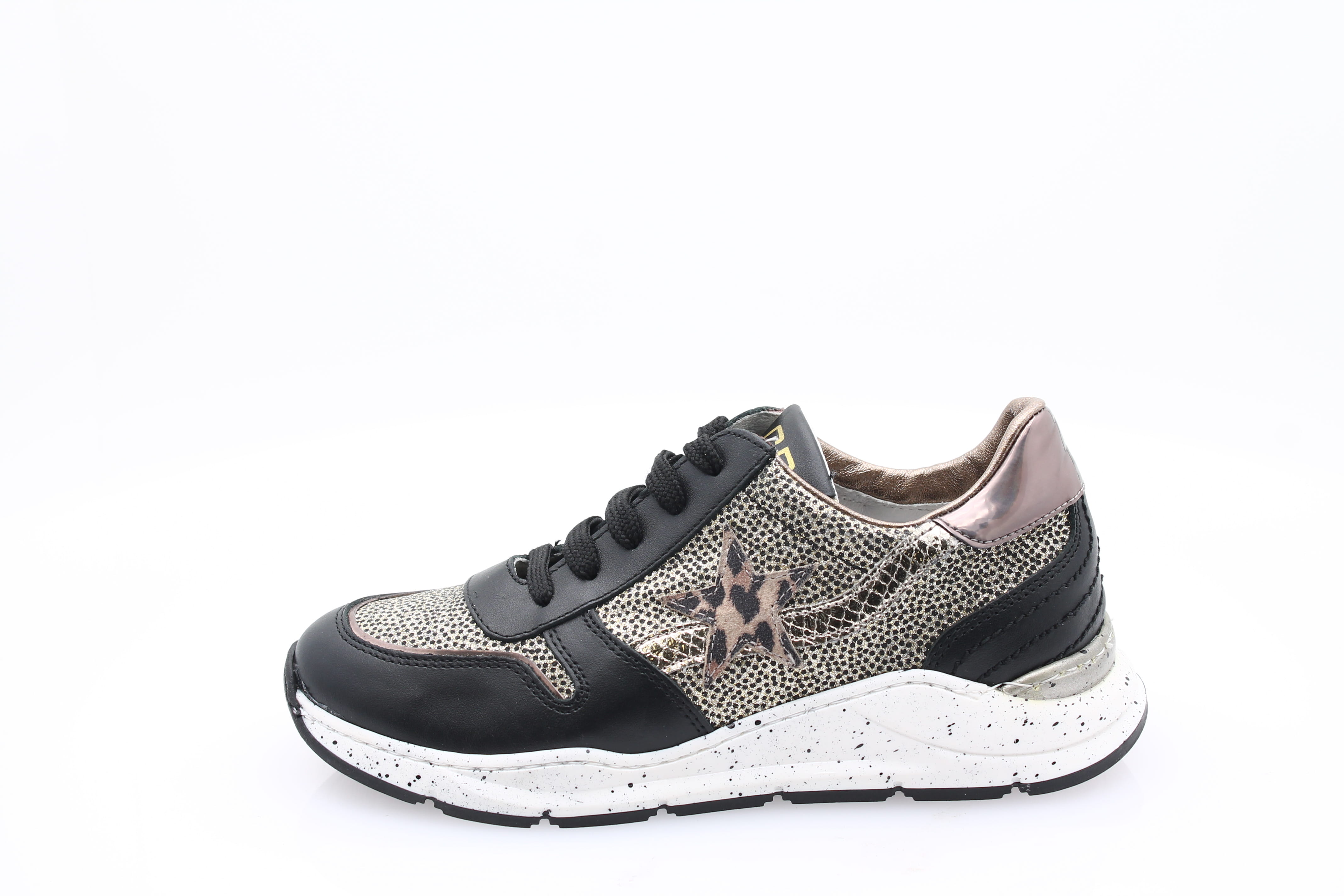 Ces baskets noires et dorées sont légèrement pailletées avec un motif étoile sur le coté. Les lacets ajoutent une touche de style et assurent un maintien parfait pour votre enfant.