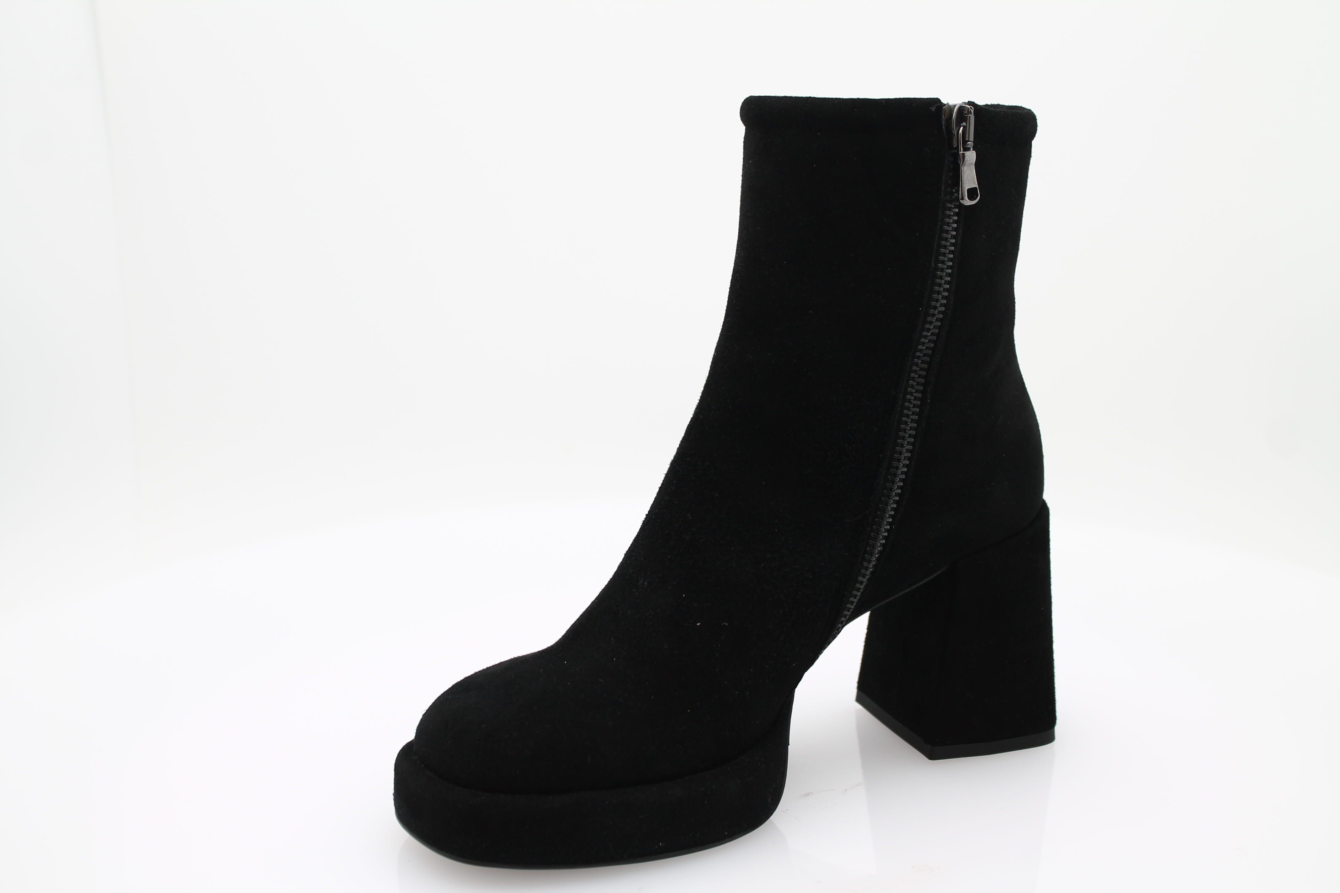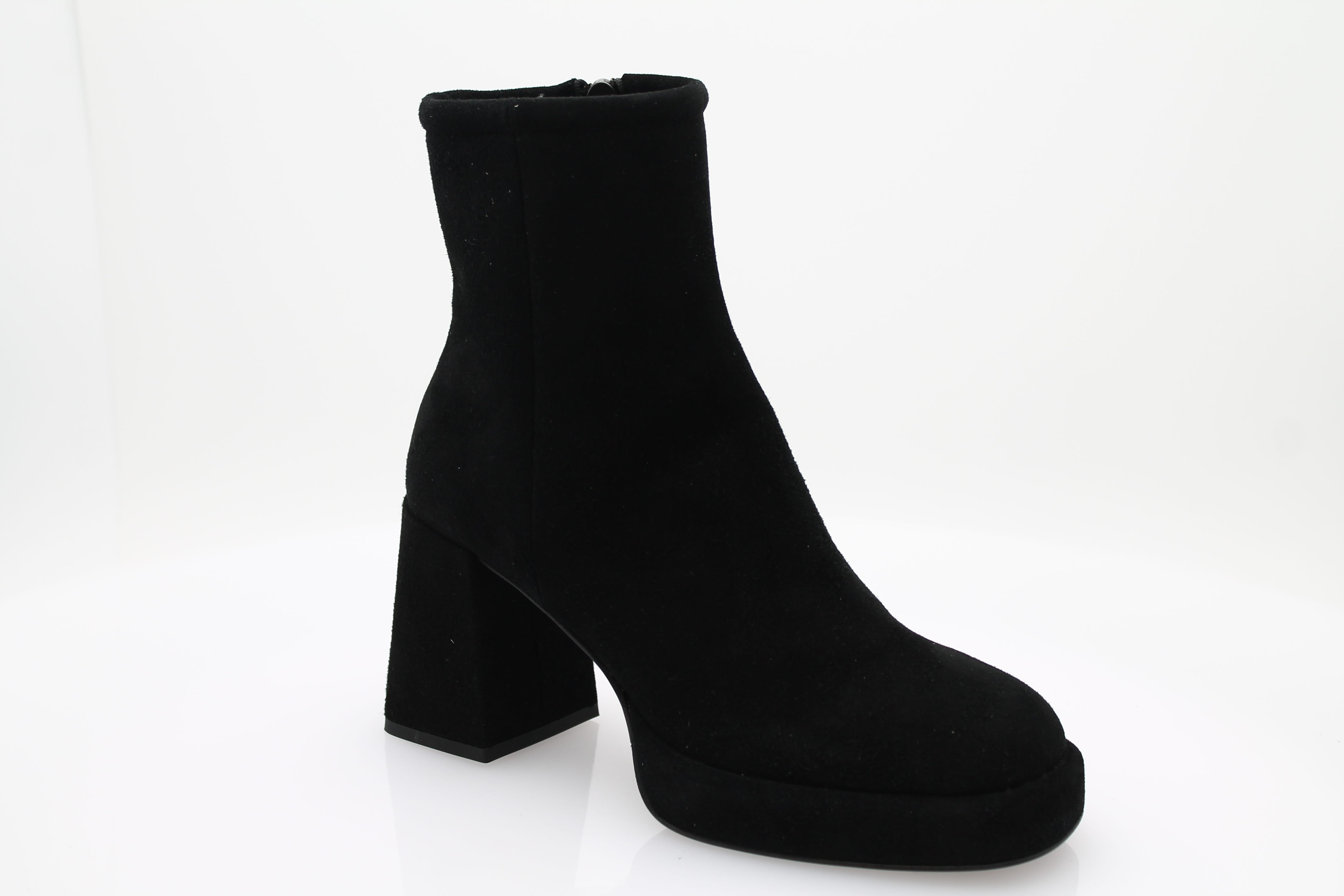 Les bottines ENZO DI MARTINO en suède noir, fabriquées en Italie, offrent une élégance sophistiquée.