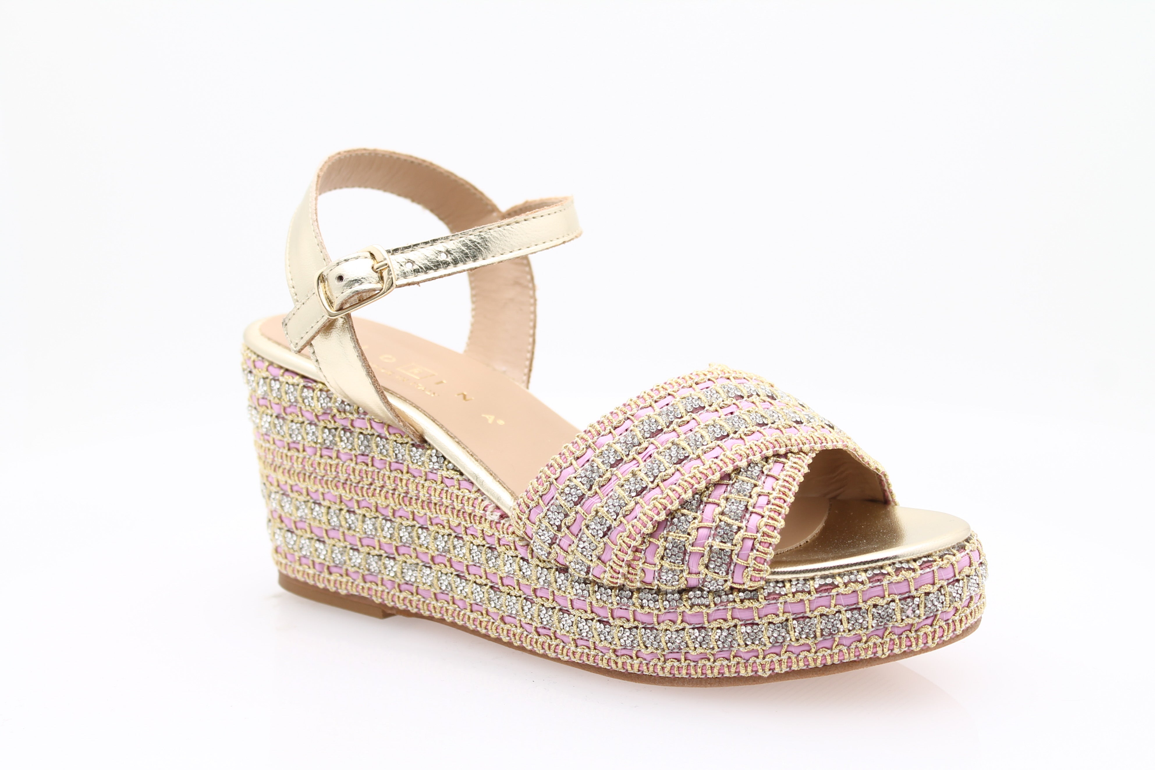 Découvrez FIORINA - la sandale à plateforme en style raphia avec des pierres rectangulaires décoratives!