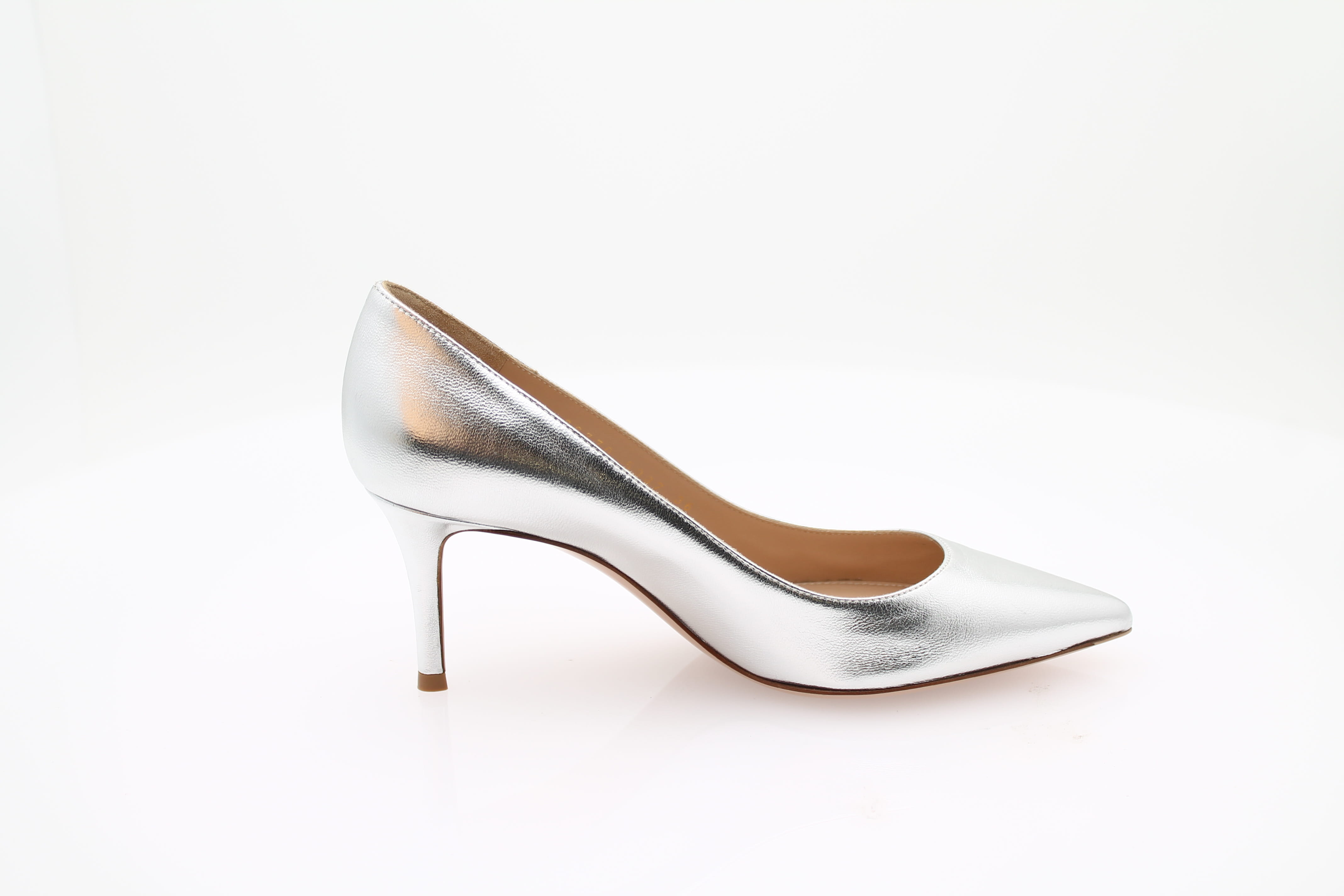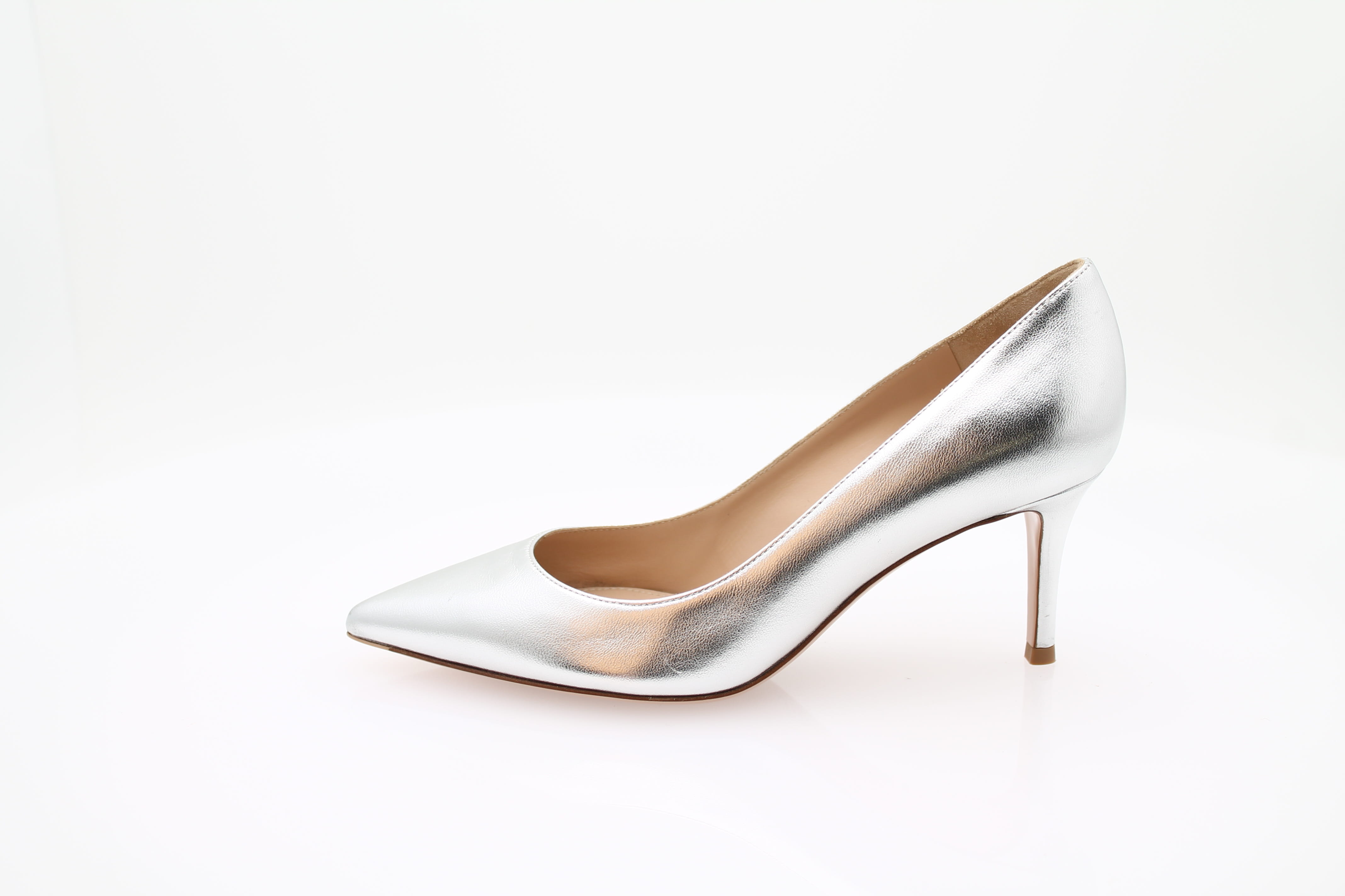 Continue shoppingThese GIANVITO silver leather pumps are perfect for women looking for elegance.