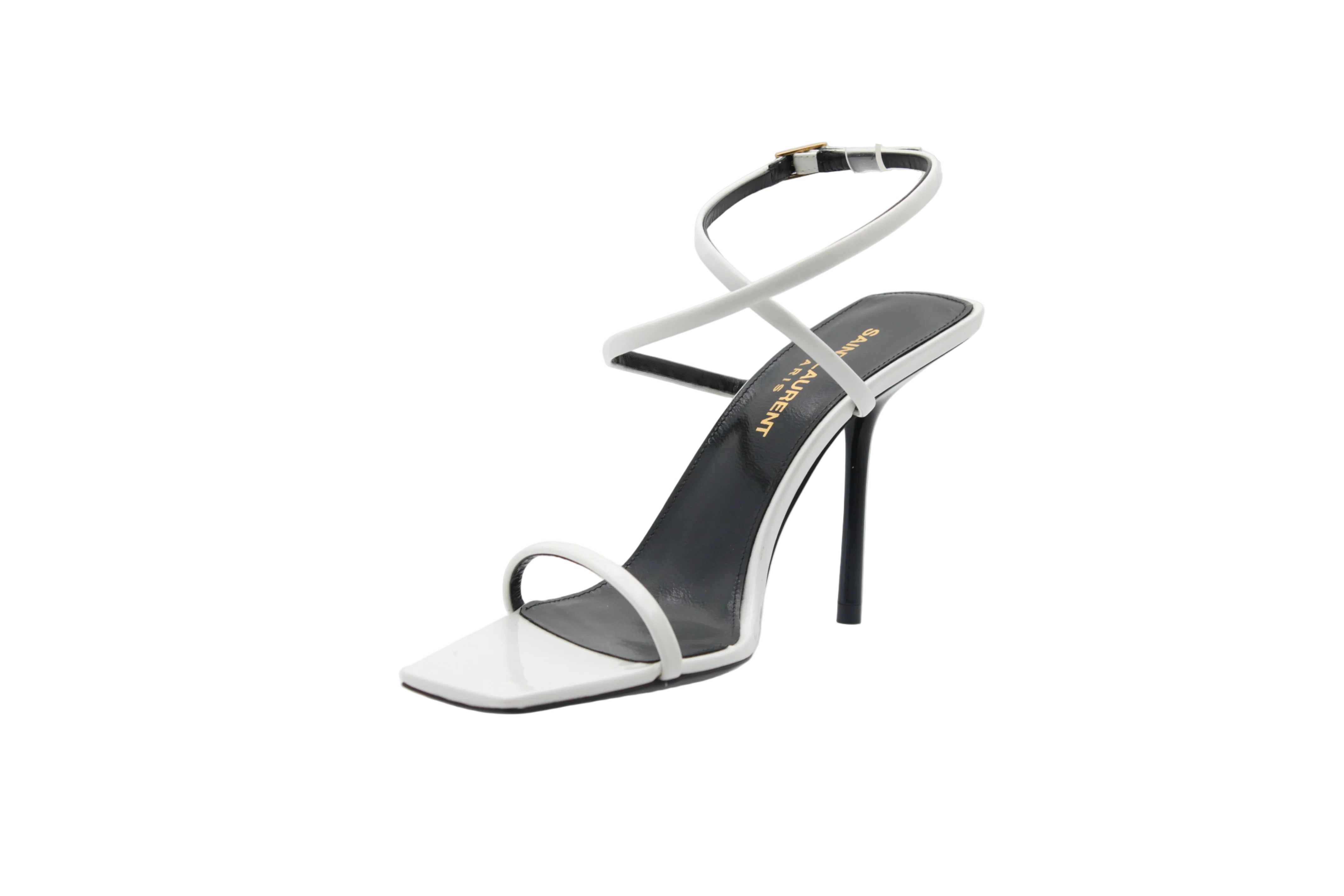 Crafted from high-quality smooth leather , this Saint Laurent heeled sandal captivates with its delicate straps and minimalist aesthetic. The adjustable ankle strap provides gentle support while elegantly accentuating the ankle, while the clean front strap subtly highlights the foot.