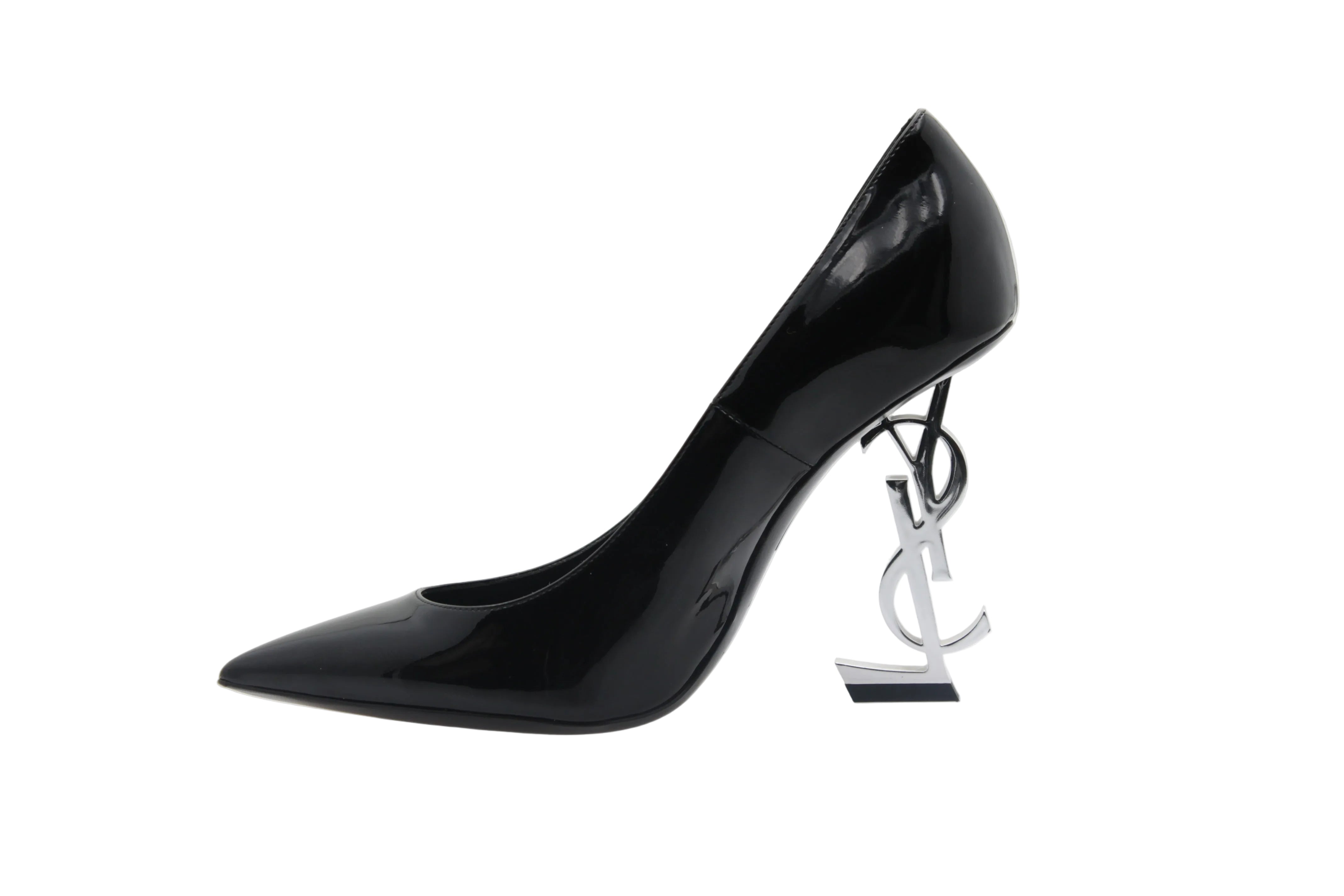 The YVES SAINT LAURENT Opyum 110 Pump – Black is an absolute icon of contemporary luxury. Its sculptural design , silver YSL logo heel , and patent leather make it an exceptional pump, designed for women who want to combine boldness , elegance , and couture character .