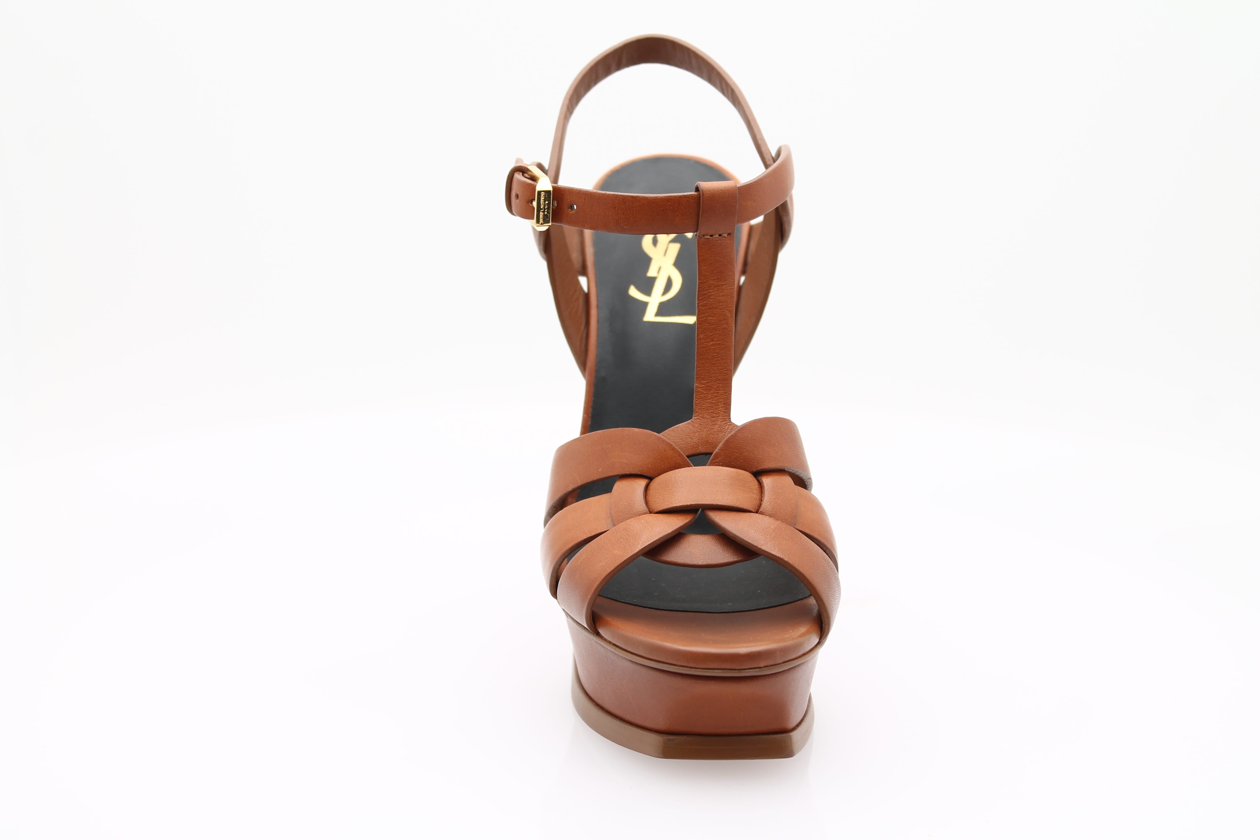 The Yves Saint Laurent Tribute sandals in brown leather combine elegance and boldness.