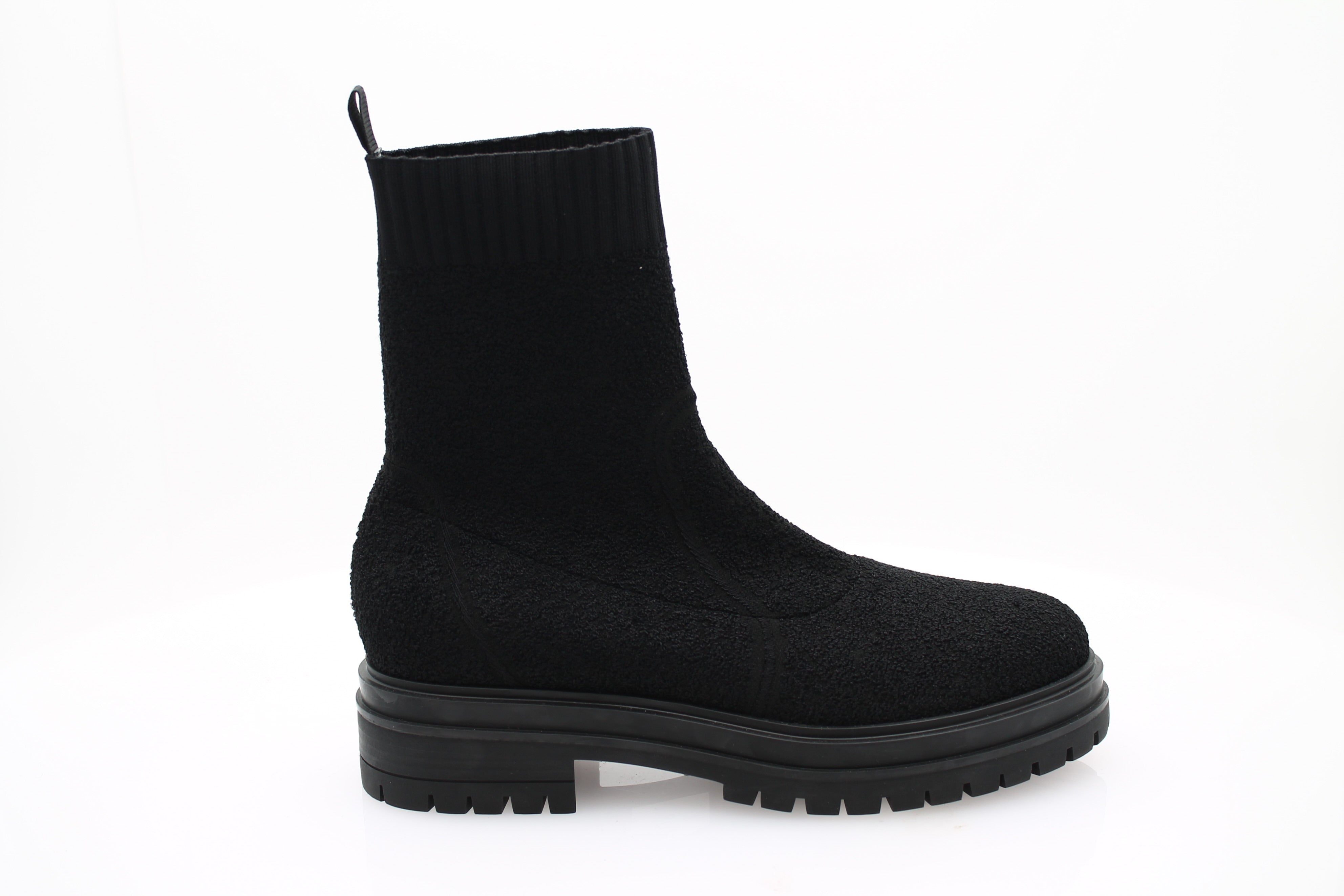 La bottine Torrance 20 Knit Bouclé de GIANVITO ROSSI est un mélange élégant de cuir et de tissu stretch.